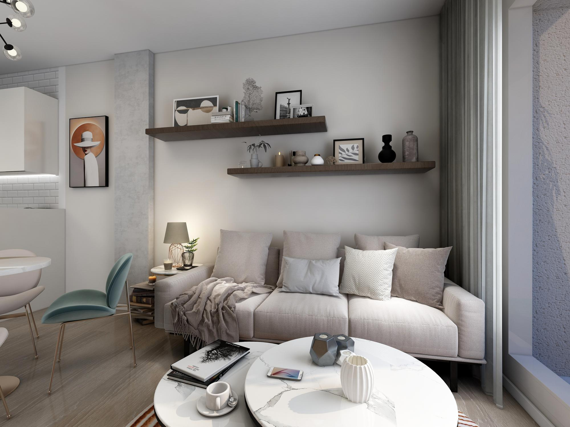淺色系牆身同傢俬有助反射光線,令空間睇落更開揚。如果怕單調,可以用唔同材質嚟增加層次感,例如淺木配米色布藝,或者白色配水泥質感。